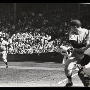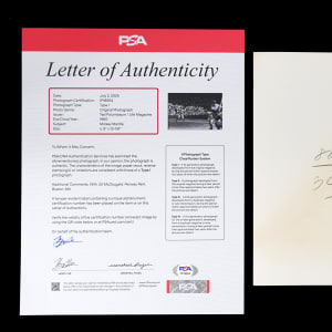 The large black and white New York Yankees Type I photographs are desirable for a few important reasons. The size and clarity of each Mickey Mantle and/or Roger Maris photo taken during 1960 season are rarely seen in this oversized format. From a three-game Yankees/Boston regular season series at Fenway Park from 9/23 to 9/25. Notable LIFE magazine photographer, Ted Polumbaum, captures the two Yankee sluggers both before and during games, with some in-action images. The official bold stamping on the reverse includes photographer name, date of game and the Yankees opponent. PSA/DNA Type I Photo Letter of Authenticity accompanies each lot.