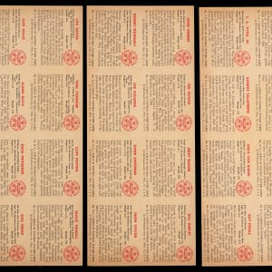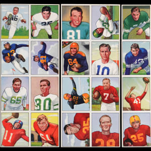 Incredibly sharp group of four 1950 Bowman Football 8-card panels totaling (32) cards with (10) Hall of Famers. This vibrant quartet is entirely crease-free with blistering surface colors and clean backs. Includes: #2-4, #5 Tittle RC, #6 Groza RC, 7, #8 Speedie RC, #9 Canadeo RC, 11-15, #16 G. Davis RC, #17 Waterfield, 18, 20-22, #23 Van Buren, 24, 25, #26 Lujack, #27 Luckman, #29 Dudley, 30-34, #35 Perry RC and 36.