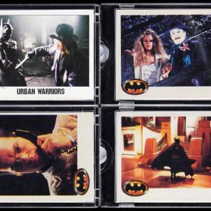 Follow the Bat-Signal for collecting excitement, with this selection of (4) 1989 Topps Vault Batman proof cards, accompanied by their original COAs. Housed in premium protective holders sealed with Topps Vault stickers, these cards have hologram stickers affixed to the back, with serial numbers that match the COAs. The fronts of these production proofs feature scenes from the 1989 "Batman" movie, with stars Michael Keaton, Kim Basinger and Jack Nicholson pictured. All (4) cards appear to be in pristine condition.