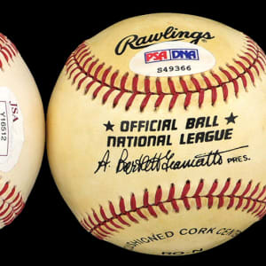 Carl Hubbell has signed in ballpoint (“8-9”) a mildly toned ONL/Giamatti ball. Comes with PSA/DNA hologram and COA.