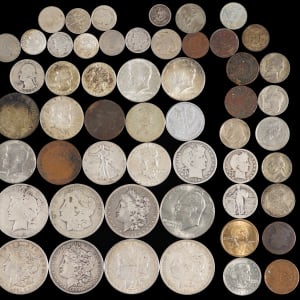 13 Dollar coins with six Morgan silver dollars; one Peace silver dollar; one Eisenhower; one Susan B. Anthony; four Sacagawea.
