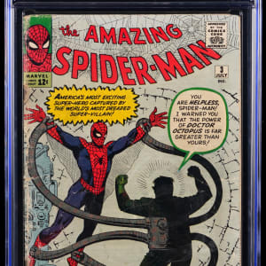 The Doctor will see you as soon as he's done trying to tear your friendly neighborhood Spider-Man apart in this July 1963 Marvel Amazing Spider-Man #3 issue. Spidey was just a teen, recently bitten by a radioactive spider, when he had to face the myopic menace Doctor Octopus for the very first time in this Silver Age classic. Super-Artist Steve Ditko blessed this early Spider-Man tale with an iconic cover, clearly indicating the bad doctor's psychotic intent. It's staggering to realize you could have bought this comic book off a newsstand for a mere 12 cents 62 years ago. Today, it's going to run you a good bit more.