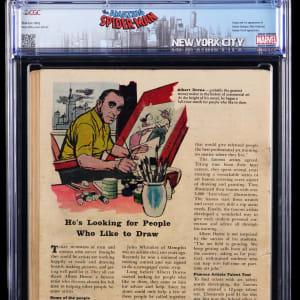 CGC has assigned this comic a grade of .5, White Pages, due to a missing page that does not affect the story. Were it not for the absent page, the various signs of attrition would possibly have seen this book rated 2.0, or maybe even 2.5. The fact that this issue counts as the first appearance of Doc Ock makes it a fine prize regardless of condition. Label notes are "Page 12 missing. Stan Lee story, Steve Ditko cover and art. Origin and 1st appearance of Doctor Octopus (Otto Octavius). Human Torch appearance."