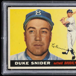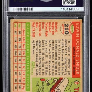 Graded VG-EX+ 4.5 by PSA. Brooklyn Dodgers Hall of Famer Duke Snider. This clean high number is the last card in the storied edition.