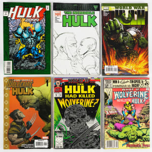 1980s-2010s Hulk miscellaneous (36) including What If #31 Wolverine Had Killed Hulk?, What If #50 The Hulk Had Killed Wolverine?, 2008 King-Size Hulk #1 double-cover variant, Hulk 2099, Hulk Family: Geen Genes, Hulk Mythos 31, Hulk vs. Venom #1, Hulk Megazine, and various other.