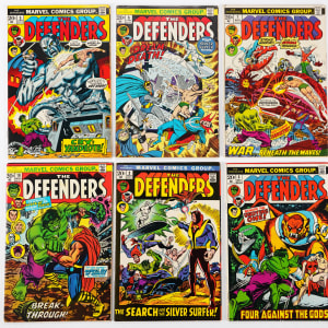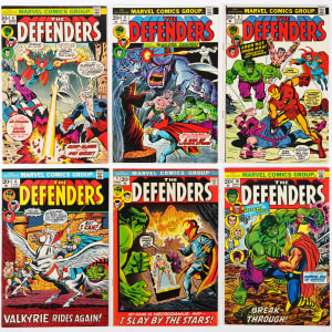 A super-team makes the scene, with this 1972-1979 Marvel The Defenders comic book collection (27). Originating with a lineup of Hulk, Doctor Strange and Namor the Sub-Mariner, this title saw a rotating lineup over the years, with many popular Marvel heroes stepping in and out.