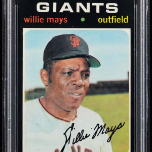 Graded NM 7 by PSA. Look no further for a sharp 1971 Topps Hall of Famer than the offered #600 Willie Mays. This San Francisco Giants legend is properly centered with barely touched corners and unchipped pitch-black edges.