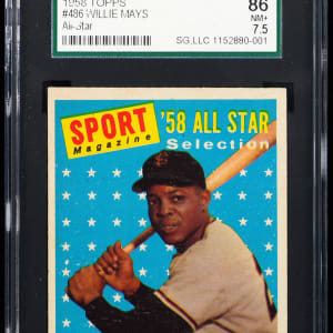 Graded NM+ 7.5 by SGC. All-Star specialty card of San Francisco Giants Hall of Famer Willie Mays. Ranks in the upper 3% of all similar cards validated by the grading company.