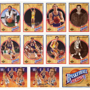 Long before his silhouetted image became incorporated as the NBA logo, Jerry West was a highly drafted, but unproven shooting guard from rural West Virginia. Fifteen seasons and 25,000 points later, “Mr. Clutch” left a Los Angeles Lakers legacy that even the glamour of Tinseltown could not surpass. Celebrate "Zeke from Cabin Creek" with the offered 1991-1992 Upper Deck Basketball Heroes Jerry West complete set of (9) cards. Most importantly, the Hall of Famer penned an additional high-grade insert card in blue Sharpie ("9") that is serially numbered #514/2500. Auction LOA from James Spence/JSA.
