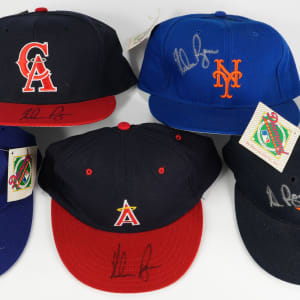 These (5) caps represent all four teams in Nolan Ryan's legendary career. All but one are New Era caps. The caps are all Near Mint and each features a large signature by the Strikeout King averaging (“7 to 9”). They include: