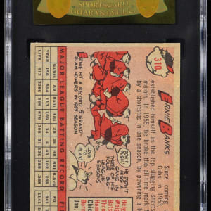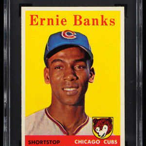 Graded NM+ 7.5 by SGC. Give a "thumbs up" to "Mr. Cub" by scoring this high-grade 1958 Topps #310 Ernie Banks gum card. A true blazer that ranks in the upper 4.7% of all similar copies justified by the grading service. Chicago Cubs Hall of Famer.