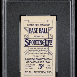 Graded EX-MT 6 by PSA. Tyrus Raymond "Ty" Cobb casts a fierce gaze on the offered 1910-1911 M116 Sporting Life pastel background variation. The "Class of 1936" Detroit Tigers Hall of Famer is in a class of his own on this 115-year-old artifact that showcases strong corners, creamy white edges and intense surface colors. The Type 1 advertising back is crystal clean with bold blue advertising text. A critical component for both diehard Ty Cobb collectors and those seeking to make progress on a tough turn-of-the-century issue. Part of a larger 1910-1911 M116 Sporting Life near set available throughout this auction.