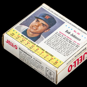 Incredibly scarce 1963 Jell-O Baseball complete unopened box picturing #96 Bob Johnson. The 62-year-old packaging featuring the Washington Senators third baseman is entirely unopened with all of its original contents securely inside. Despite expected storage wear and vertical creasing along the right boundary, this jiggly blackberry flavored treat still exhibits outstanding eye appeal.