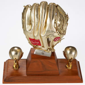 The Rawlings Gold Glove Award, which is presented annually to the top Major League fielder at each respective position, is perhaps the most visually impressive of all individual baseball awards. The offered Rawlings Gold Glove Award example was presented to Hall of Fame shortstop Ozzie Smith in 1980. The award would be the first of an impressive 13 won by the dazzling San Diego Padres and St. Louis Cardinals fielder. The award features a golden fielder's glove and two golden baseballs mounted atop a wooden base. Affixed to the base is a plaque picturing Smith, beneath which is a second plaque reading, "1980 Rawlings Gold Glove Award - Presented To - Ozzie Smith - Honoring His Selection to The Sporting News National League All-Star Fielding Team." The Rawlings logo appears on either end of the second plaque. The Gold Glove Award, which was established in 1957, is one of only a few major awards issued annually to Major League players in recognition of individual achievement. Because of its significance, nearly all previously issued Gold Glove Awards remain in the possession of the respective player and/or his family. The offered example comes with impeccable provenance. It was gifted directly to our consignor — a front office executive with the San Diego Padres — by Smith immediately following the presentation of the award. The two men had developed a close friendship, and Smith found it to be significant enough to gift the award to our consignor. Notably, Ozzie Smith sold a collection of Gold Glove Awards at public auction in 2012 for a staggering $519,203. According to our consignor, Smith had obtained additional awards for display at his restaurant. The offered award is especially desirable given the status of the recipient. Ozzie Smith is widely regarded as the greatest defensive shortstop in Major League Baseball history. Known as "The Wizard," his acrobatic plays, quick reflexes, and smooth fielding set a new standard for defensive excellence at his position. Beyond his glove, Smith was a key part of the St. Louis Cardinals’ success in the 1980s, contributing speed, leadership, and clutch performances en route to a World Series title in 1982. He was elected to the Hall of Fame in 2002, his first year of eligibility, and in 1999 was named to Major League Baseball' s All-Century Team. The award displays light wear, and is in overall Excellent condition. The opportunities for collectors to acquire Gold Glove Awards are few and far between, especially those awarded to Hall of Fame players. This is an ideal example, with exceptional provenance, belonging to one of the greatest fielding stars in the history of the game. The size/weight of this item requires that there will be an additional shipping charge for this lot.