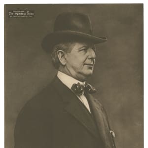 Dated October 21, 1909 M101-2 Sporting News Supplement of legendary executive and Chicago White Sox founding owner Charles A. Comiskey. This portrait of the stout 1939 Hall of Famer displays only mild peripheral wrinkling and a clean blank back. Overall 7-3/8 x 9-3/4" dimensions.