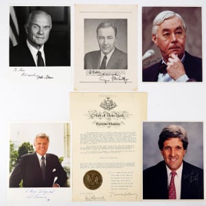 Ted Kennedy 8x10 color photo signed with inscription “to Kira, All my best, Ted Kennedy ‘98” (“5-6”).