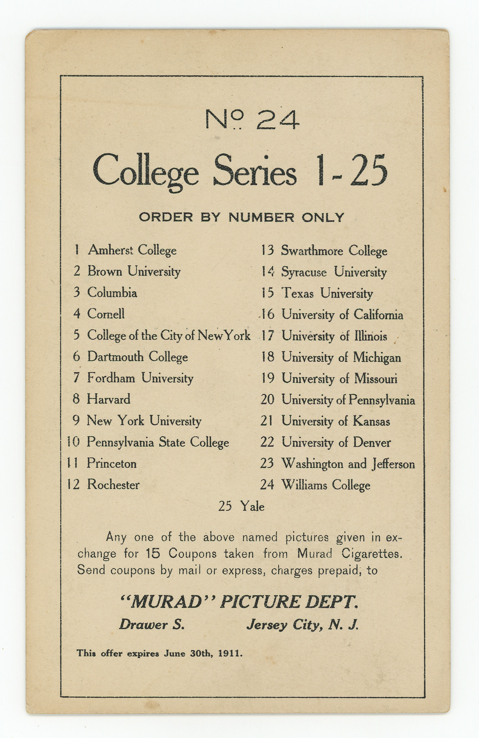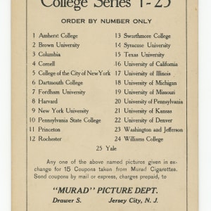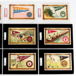 Skip the hard work required to assemble this large format tobacco issue when you claim this tough 1910-1911 T6 Murad College Series complete set. Oversized cards such as these proved challenging to safeguard, and it's a marvel this group has survived in collectible condition for more than a hundred years.