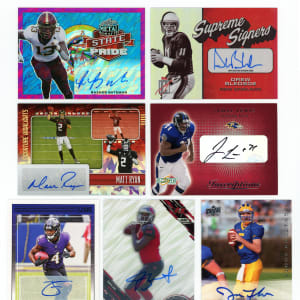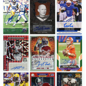 Modern Singles Dealers! Fantasy firepower lights up the scoreboard with the offered modern football certified autograph collection of (625+) cards featuring numerous Hall of Famers and stars. Several of these pack-pulled modern inserts are numbered and come from a variety of tiered subsets. Highlights include: Bateman, Bledsoe, Bruce, Flacco, Flowers, Lawrence, J. Lewis, Montana, Nabers, J. Rice, Ra. Rice, Ryan, Sayers, Tittle, Vick, Winston and many more!