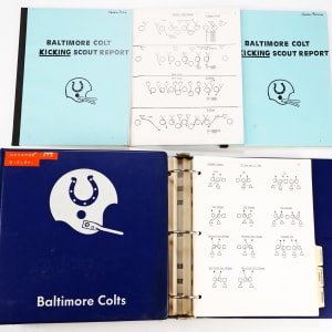 Running back Dick Bielski played for three pro teams before. becoming wide receivers coach for the Baltimore Colts in 1964. After a stint with the Redskins, he came back to the Colts from 1977 to 1981. These playbooks and scouting reports are unique insight into the work coaches did before the advent of computers. It includes: