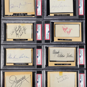 Each of these (6) cut autographs by popular entertainment figures have been pasted on 3x5 cards with their names printed on labels below the signature. Each one has been individually encapsulated by PSA/DNA and Certified Authentic.