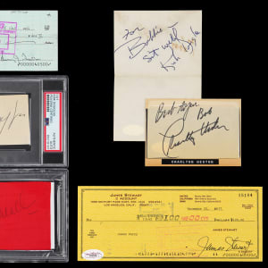 The signees of this group are truly Hollywood royalty. Highlights include (2) signatures by Kirk Douglas, who signed both before he was disabled by a stroke, and checks signed by best friends, Henry Fonda and James Stewart.