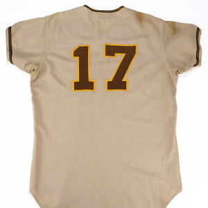 Uniform items from the Padres' formative years are in short supply, and this attractive gamer is a handsome example, with condition described as "good-to-excellent" on the accompanying LOA. A nameplate inside the collar is embroidered with "N Colbert" in cursive lettering. Sewn on the left-front tail is a Wilson size "42" factory label, and the date "1970" is embroidered below. Colbert's number "17" is seen on the back and "San Diego" letter patches span the breast. A pleasing example from a second-year expansion franchise, this well-preserved jersey is worthy of a long look. Accompanying is a pair of stirrups, also worn by Colbert during the 1970 season.