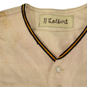 Score a fairly tough jersey type with this 1970 Nate Colbert game-used San Diego Padres road jersey. The Padres inaugural MLB season came as part of the 1969 expansion and included the Montreal Expos, Kansas City Royals, and Seattle Pilots. San Diego's first star position player, the heavy-hitting Colbert joined the Padres for their 1969 inaugural season, contributing 24 bombs to the cause. Colbert had little in the way of success with his other four MLB teams but he crushed it during his six seasons in San Diego, setting a long-standing franchise record with 163 home runs.