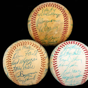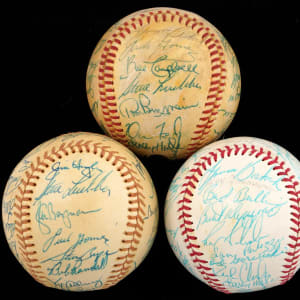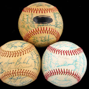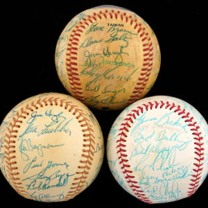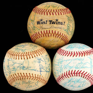 These two Minnesota Twins signed baseballs are from the Estate of infielder Mike Cubbage, who played on both teams. Signatures average (“8-9”).