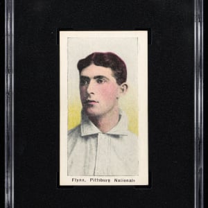 Graded NM 7 by SGC. Pittsburgh Pirates first baseman John Flynn. Only 7 total examples of this crisp Keystone player have been judged by the grading service with none better! Tougher Type 3 advertising back. Part of a larger 1910-1911 M116 Sporting Life near set break available throughout this auction.