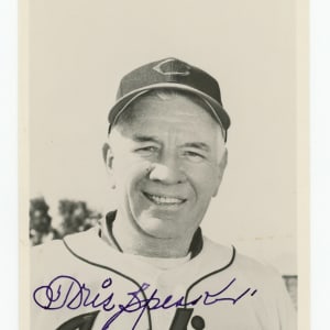 Tris Speaker spent the last part of his Hall of Fame career as the player/manager for the Cleveland Indians. This Excellent to Near Mint photo postcard of Speaker in his Indians uniform dates the image from the early 1919-1926. The signature on the postcard is a strong (“9-10”) beauty.