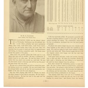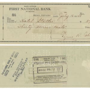 All-time batting leader Ty Cobb is on the money with this signed check. This First National Bank of Nevada check is dated July 16, 1948. Cobb has signed on the bottom line, as "Tyrus R. Cobb," matching the printed version of his name seen at the left end. Cobb's fountain pen signature is of decent quality, and the check remains fairly crisp. Accompanying is a four-page spread from the 1932 hardcover edition of Who's Who in Baseball, including a page with Cobb's photograph and career statistics.
