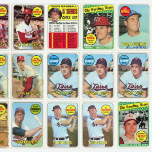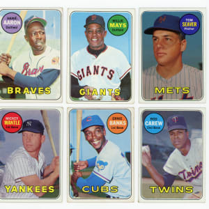 Significant 1969 Topps collection of (750+) cards hallmarked by (50+) Hall of Famer. This primarily mid-grade assembly generally presents in the (VG to VG-EX) range but does contain moderate condition variances throughout. Highlights include: #1 Yaz/Oliva LL (VG), #20 Banks (GD), (2) #85 Brock (both VG), #100 Aaron (FR), #190 Mays (VG-EX), (2) #200 Gibson (one VG, one PR, stain), (2) #250 F. Robinson (VG-EX, VG), (3) #255 Carlton (one VG, one GD, one PR, stain), (3) #375 Killebrew (EX, VG, GD), #400 Drysdale (VG-EX), (2) #410 Kaline (VG-EX, VG), #412 Mantle CL (VG), (2) #424 Rose AS (VG, FR), #430 Bench AS (VG), #480 Seaver (VG-EX), #500 Mantle (VG) and #510 Carew (VG).