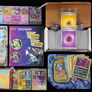 (700+) Singles from early Sword & Shield expansions all the way through Scarlet & Violet’s Surging Sparks. While a generous supply of base cards are scattered throughout, many holographic, Full Art, V and VMAX are present along with several Illustration Rare(s).