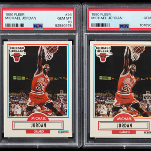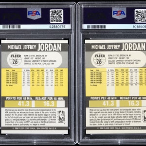 Each graded GEM MINT 10 by PSA. Double up on perfection with the offered pair of 1990-1991 Fleer Basketball #26 Michael Jordan singles. Chicago Bulls Hall of Famer.