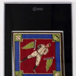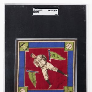 Population 1! Graded Authentic by SGC. Near impossible 1914 B18 Blankets Hank Gowdy (Red Infield) variation. As a key rarity in the ACCdesignation, this flannel of the Boston Braves World War I veteran presents high grade with an unfrayed perimeter and clean surfaces that are entirely absent of residue or other obtrusive wear. Part of a core group of four B18 Red Infield variants individually offered throughout this auction.