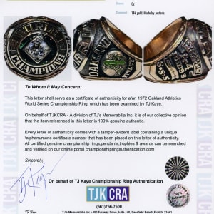 Letter of Authentication from prominent ring expert TJ Kaye (TJKCRA). A Jostens ring box is also included.