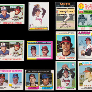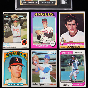 Presented is a run of (19) 1968-1979 Topps Nolan Ryan singles including an SGC graded rookie card. Includes: 1968 Topps #177 RC (SGC Authentic, Altered), 1970 Topps #712 (EX), 1971 Topps #513 (colored), 1972 Topps #595 (VG-EX), 1973 Topps #220 (VG-EX), 1974 Topps: (2 cards) with #20 (EX), #207 LL with Seaver (VG-EX); 1975 Topps #500 (EX-MT), 1975 Topps Mini #313 LL with Carlton (EX-MT), 1976 Topps #330 (VG-EX), 1977 Topps: (3 cards) with #66 LL with Seaver (VG), #234 RB (EX), #650 (EX); 1978 Topps: (4 cards) with #6 RB (EX-MT), (2) #206 LL with Niekro (both EX), #400 (VG-EX); 1979 Topps: (2 cards) with #115 (EX) and #417 All-Time with W. Johnson (VG-EX).