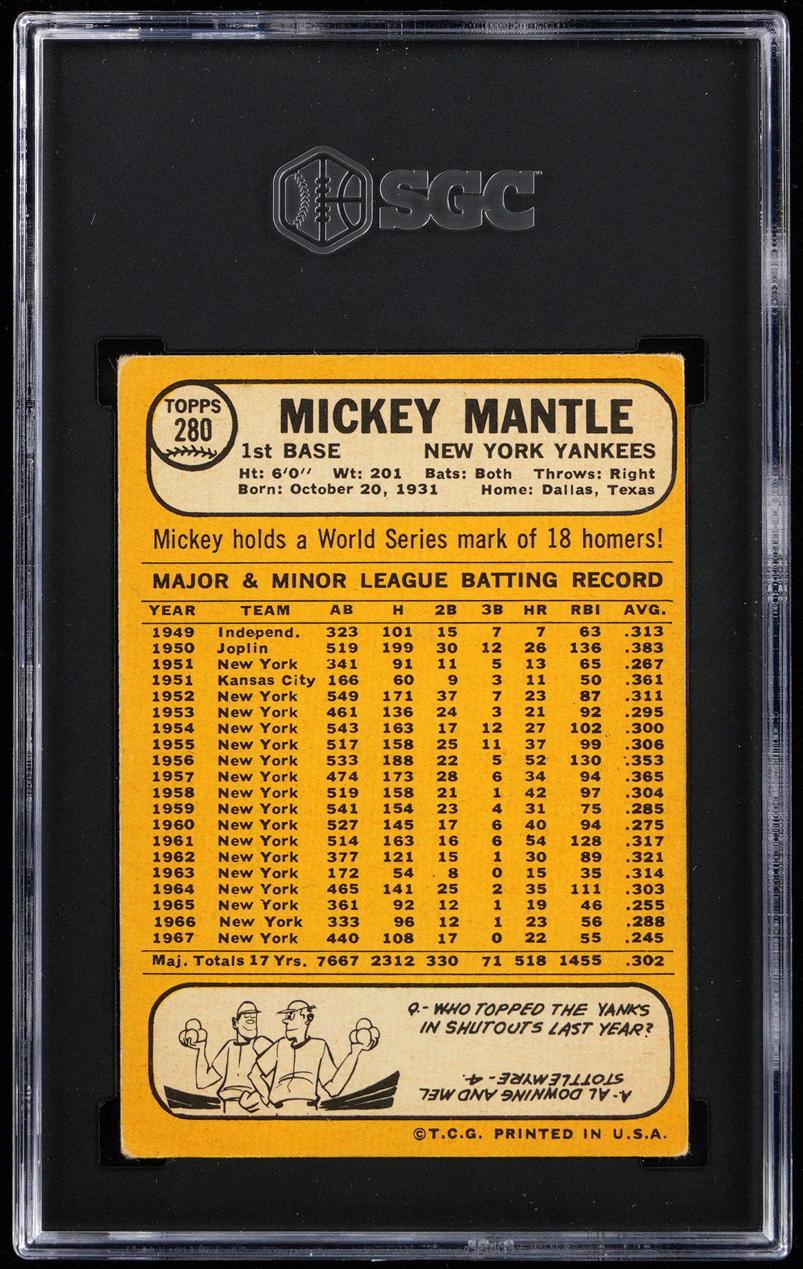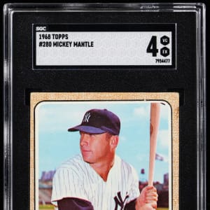 Graded VG/EX 4 by SGC. The second-to-last Topps flagship card of New York Yankees Hall of Fame legend Mickey Mantle.