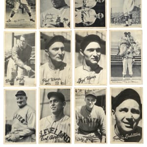 1936 R314 Goudey Wide Pens: (17 cards, average PR to FR with 47% reverse writing) with Averill (PR, reverse writing), Hoyt (PR, reverse writing), Lindstrom (FR), Vaughan (PR, reverse writing), L. Waner (FR), P. Waner (PR)