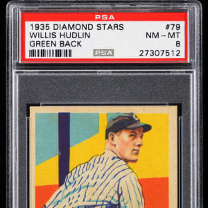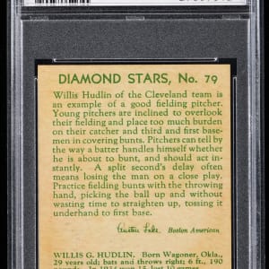 Graded NM-MT 8 by PSA. Cleveland Indians pitcher Willis Hudlin. Allowed Babe Ruth's 500th career home run. Ranks in the upper 16% of all similar copies evaluated by the grading service with 4 higher. Part of a 1934-1936 Diamond Stars PSA graded near set break available throughout this auction.