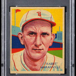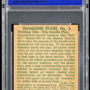 Graded NM-MT 8 by PSA. Hop to the offered 1934-1936 Diamond Stars #3 gum card of Boston Braves Hall of Famer Walter "Rabbit" Maranville. A lower population high-grade portrait that ranks in the upper 8% of all similar copies judged by the authenticator with one higher. Part of a 1934-1936 Diamond Stars PSA graded near set break available throughout this auction.