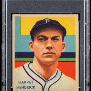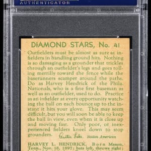 Graded NM-MT 8 by PSA. Philadelphia Phillies first baseman Harvey Hendrick. Ranks in the upper 9% of all similar copies evaluated by the grading service with 4 higher. Part of a 1934-1936 Diamond Stars PSA graded near set break available throughout this auction.