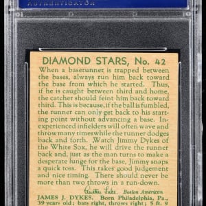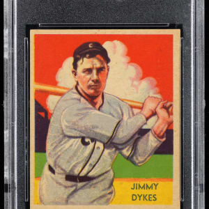 Graded NM-MT 8 by PSA. Chicago White Sox All-Star Jimmy Dykes. Ranks in the upper 10% of all similar copies evaluated by the grading service with 3 higher. Part of a 1934-1936 Diamond Stars PSA graded near set break available throughout this auction.