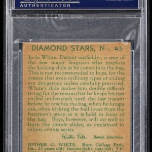 Graded NM-MT 8 by PSA. Detroit Tigers outfielder Jo-Jo White. Ranks in the upper 9% of all similar copies evaluated by the grading service with 4 higher. Part of a 1934-1936 Diamond Stars PSA graded near set break available throughout this auction.