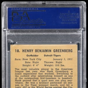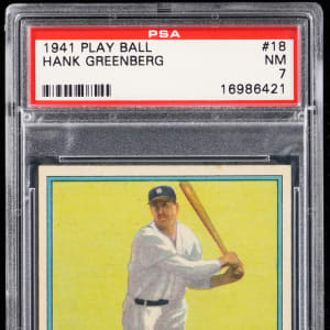 The Hebrew Hammer! Graded NM 7 by PSA. Detroit Tigers Hall of Fame slugger Henry "Hank" Greenberg. Ranks in the upper 16% of all similar copies validated by the authenticator. Part of a 1941 Play Ball PSA graded near set break available throughout this auction.