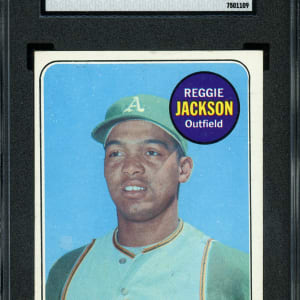 Lot # 736: 1969 Topps #260 Reggie Jackson Rookie SGC EX 5