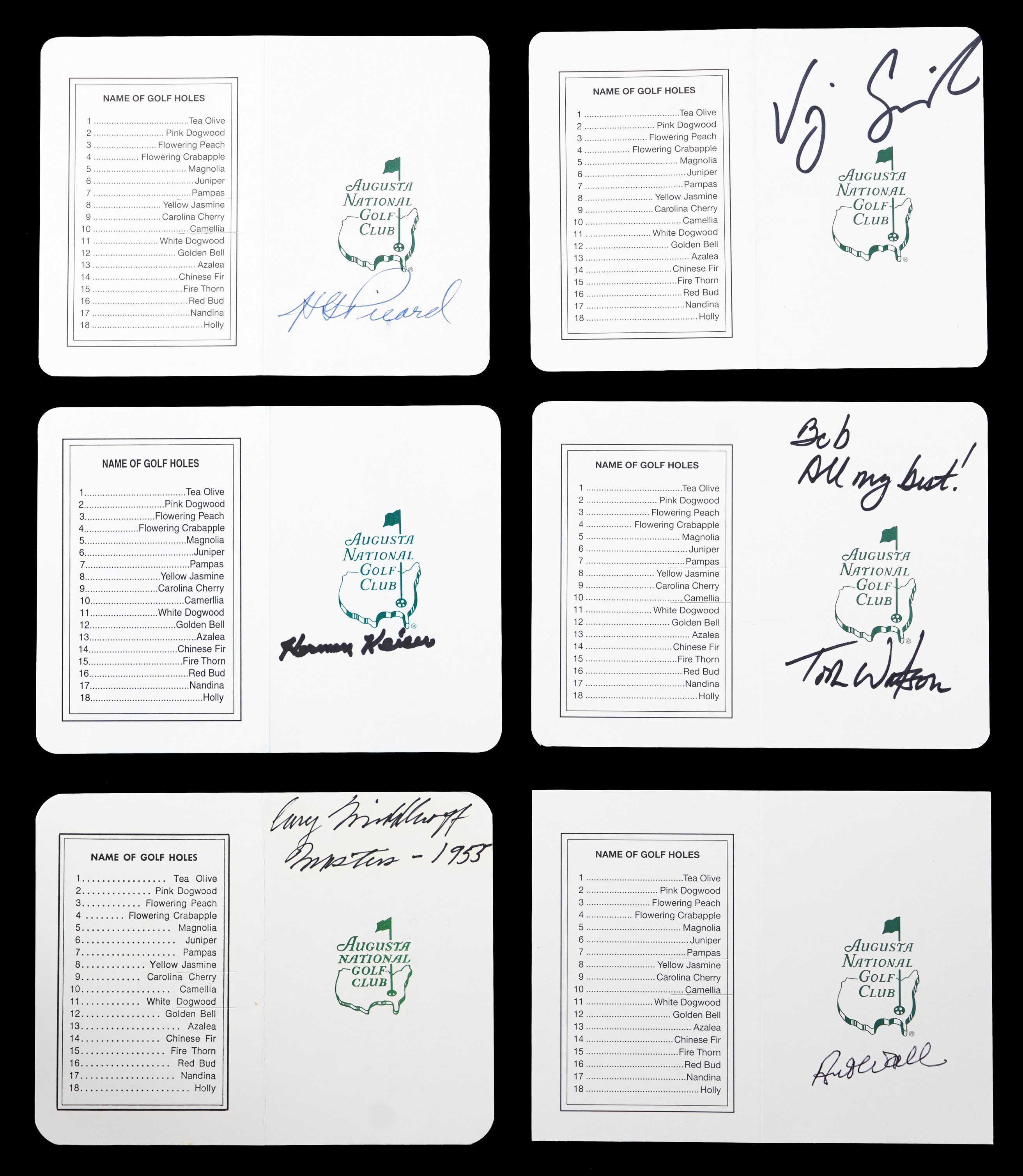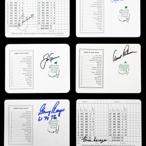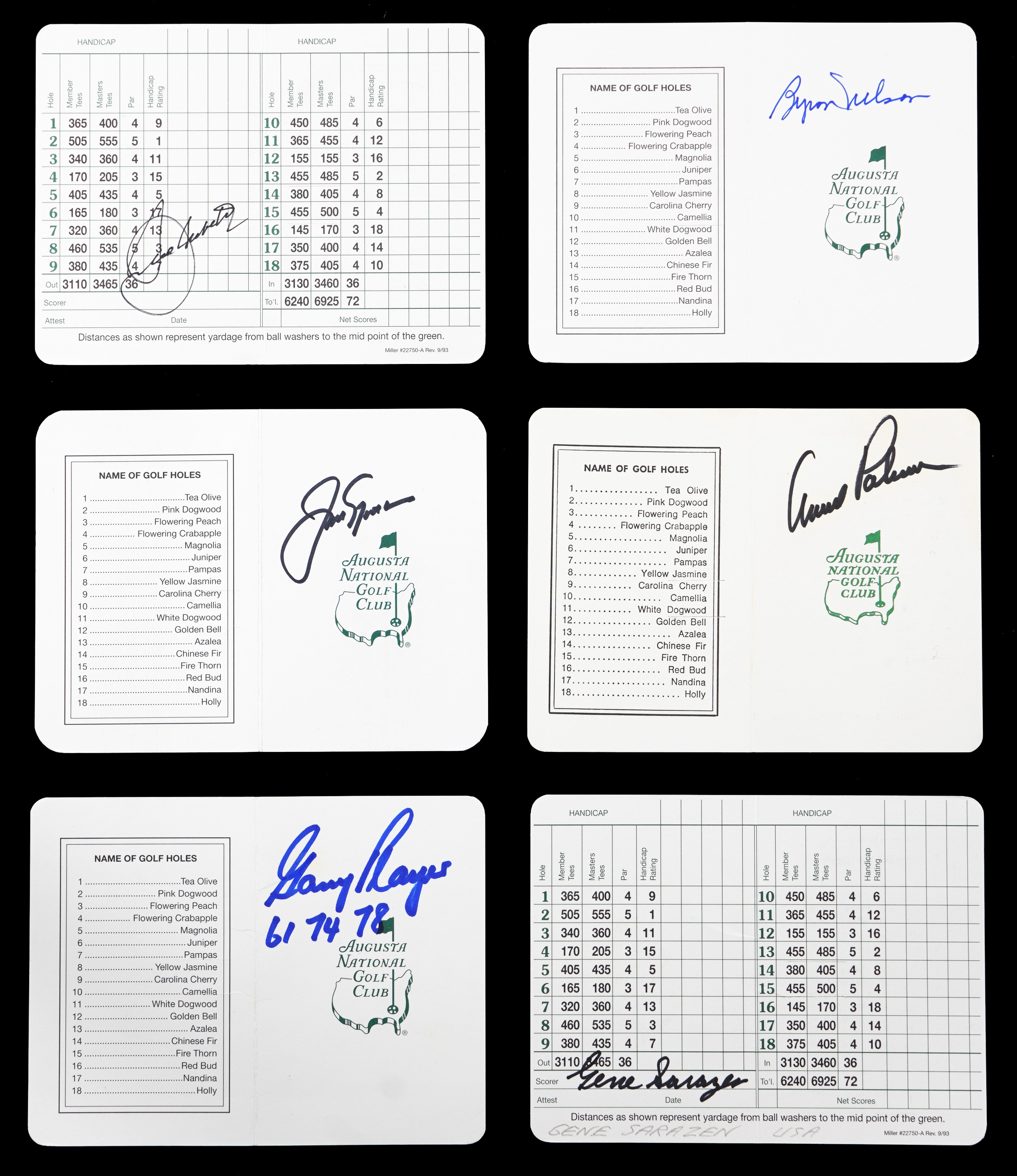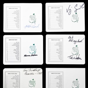 From the site of one of golf's most prestigious events, comes this Masters Tournament champions signed Augusta National Golf Club scorecard partial set (35/56). One golf's four major championships, the Masters is a sacred tournament to devoted fans, and those who have earned the right to don the "Green Jacket" are the sports most celebrated stars. These crisp, clean scorecards are adorned with firm signatures throughout the collection.