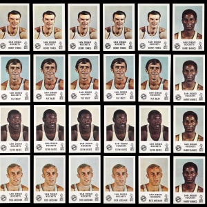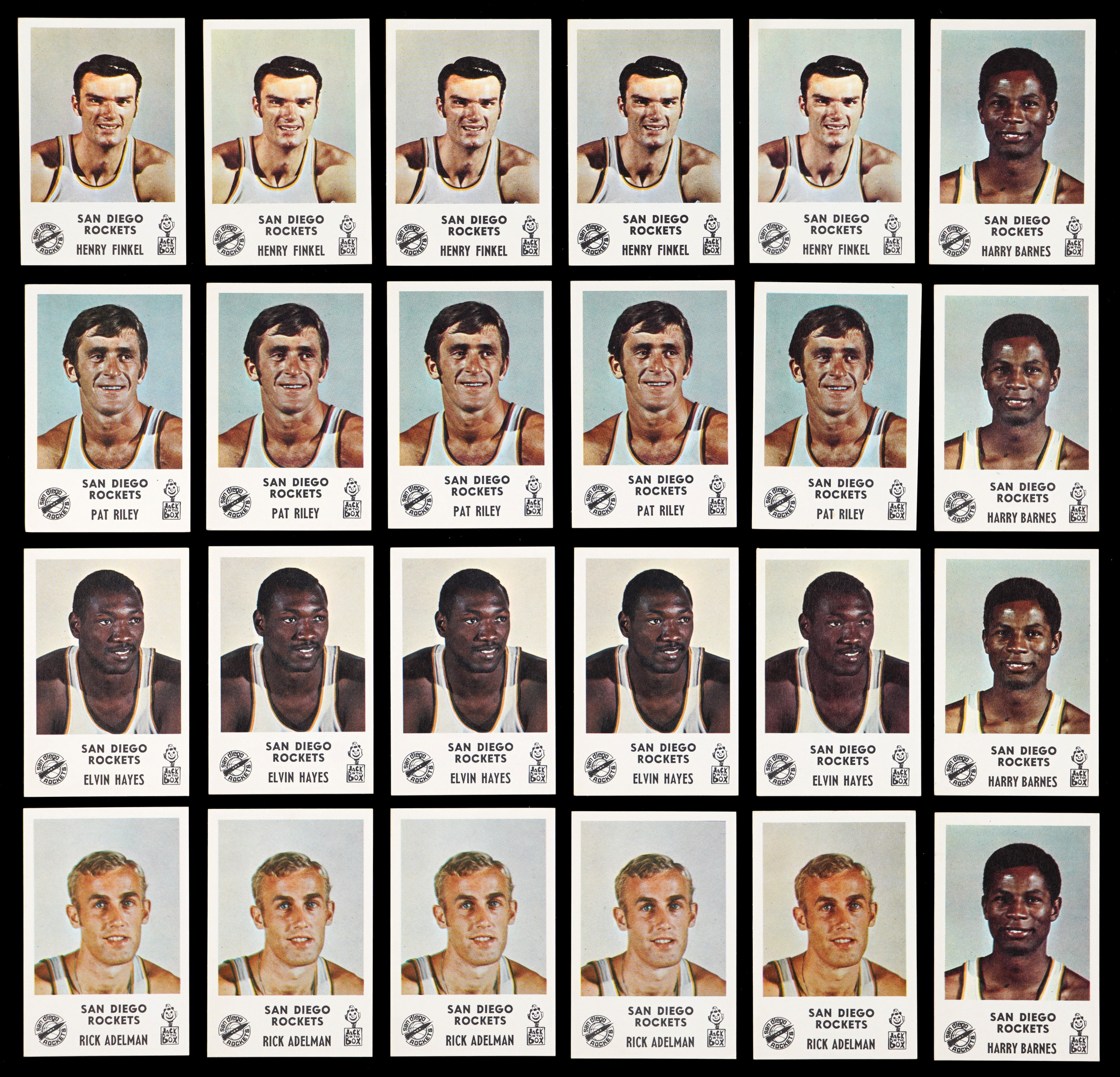 Blast off for these five 1968-1969 Jack in the Box San Diego Rockets complete sets. These 14-card editions average (NM to Mint) and feature Adelman RC, Barnes SP, Finkel SP, Hayes RC and Riley RC.