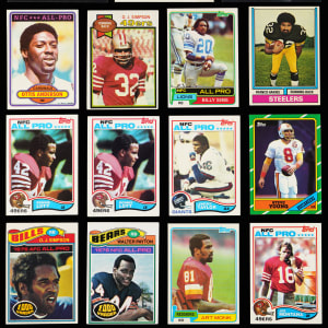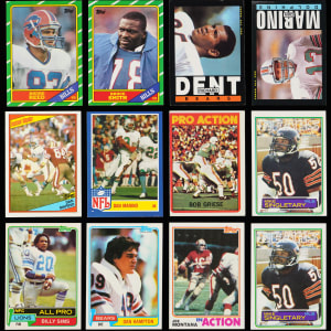 Presented is a 1972-1986 Topps Football superstar collection of (27) cards with several Hall of Fame rookies. This arrangement overall generally presents in the (EX to NM) range with some better or lesser. Highlights include: 1972 Topps #160 Simpson (EX), 1974 Topps #220 F. Harris (VG), 1977 Topps: #100 Simpson (EX-MT), #284 D.White (VG-EX), #360 Payton (VG); 1981 Topps #194 Monk RC (EX-MT), 1982 Topps: #434 L. Taylor RC (EX-MT), (2) #486 Lott RC (EX-MT, EX), #488 Montana (NM); (3) 1985 Topps #314 Marino (NM, EX-MT, VG) and 1986 Topps #374 S. Young RC (NM-MT).