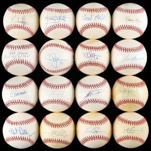 This bevy of single-signed official baseballs is from the collection of MLB player/coach, Mike Cubbage. With an abundance of white baseballs and a few lesser, the signatures are mostly on the sweet spot, a few with inscriptions. They average (“7 to 9”) in potency with a few lesser.